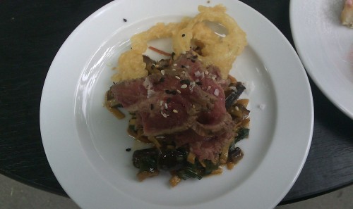 Prague food festival 201327. 5. 2013 Po příjemné zkušenosti z Prague food festivalu 2012 jsem se tam vydal i letos, tentokrát s větším rozpočtem.ÚvodLoni jsem byl z Prague food festivalu 2012 naprosto nadšený, prakticky všechna jídla pro mne byla velkým pozitivním zážitkem. Loni jsem měl k dispozici 20 Grandů a nebylo to úplně moc, letos jsem si tedy pořídil největší vstupenku s 50 Grandy. Grand je jediné festivalové platidlo, za které si kupujete jídla a případně nápoje. Maximální cena položky je 10 Grandů, což je většinou cena celého festivalového menu dané restaurace, většinou se skládá ze tří chodů. Také můžete ochutnávat jednotlivá jídla, jejichž cena se pohybuje většinou kolem 2-4 Grandů za předkrmy/dezerty a kolem 5-7 Grandů za hlavní jídla. Cena jednoho Grandu je 25Kč a navíc si musíte koupit vstupenku, která v předprodeji stojí 150Kč, zatímco na místě 200Kč. Letošní 50grandová vstupenka tedy stála vysokých 1.400Kč. Jak jsem s nimi naložil, popíšu u jednotlivých jídel v pořadí, jak jsem je jedl.Yasmin hotel, NoodlesKorejské nudle 'Jap Che' s shiitake houbami a hovězím oříškem naloženým v kukuřičném sirupuPrvním jídlem byly průhledné nudle, které nebyly rýžové, ale byly z bramborového škrobu. Celkem špatně se nabíraly vidličkou, protože byly drobné a hrozně klouzaly. Byly stěží znatelně ostré. Na vrchu byly jemné plátky hovězího masa. Celková chuť byla velmi nevýrazná. Žádný velký zážitek. ![]() Prsíčka z perličky na ragout z lišek a římské noky s čerstvým libečkem Prsa z perličky si objednala kamarádka. Osobně drůbeží prsa nemusím, protože mi připadají velmi nudná. Ani tady nebyla chuť prsou a liškového ragú nijak výrazná. Dobrý byl nok z libečku, kde se libeček projevil na chuti až po nějaké chvilce. Žádný velký zážitek. ![]() Tak trochu jiná krupicová kaše - studená a šlehaná s melounem a medovými chipsy Kaše byla skutečně úplně studená, podávaná na vychlazeném talířku. Kostičky červeného a žlutého melounu byly spíš na ozdobu, chuť moc neovlivnily. Na medovém chipsu jsem chuť medu necítil, byl to spíš takový cukrový plátek. Zato kaše samotná byla naprosto dokonalá, tipuji, že ještě trochu dochucená vanilkou. Velký zážitek. ![]() Corinthia Hotel Prague, RickshawGrilovaná královská kreveta se salátkem z jasmínové rýže a asijských bylinekKreveta byla parádně udělaná, velmi dobrá. Rýže byla pro mne nepříjemně podávaná za studena a bez žádné zvláštní chuti. Zážitek napůl. ![]() Křupavá humří jarní rolka podávaná se salátkem z mořských řas a oříškovou omáčkou Buráková omáčka byla velmi dobrá, bohužel jí byla jen kapička. Řasový salátek byl nekonfliktní a vlastně i dobrý. Humří rolka byla maličká, což je škoda. Průměr, kvůli kterému bych se nevrátil. ![]() Domácí mango sorbet se sladkým rýžovým pudinkem Rýžový puding byl celkem obyčejný sladký rýžový nákyp. Mangová zmrzlina mi zase chutnala stejně jako třeba nějaký oranžový sirup na výrobu šťávy. Žádný velký zážitek. Loňský poctivý kopec mangové zmrzliny od Angelata byl nesrovnatelně lepší. ![]() Farma KošíkU farmy Košík prodával charizmatický hlasitý Slovák, který stíhal všechny organizovat, prodávat, inkasovat i děkovat a zvát.Halušky s brynzou a škvarkami Halušky mám opravdu rád a nebyl jsem zklamán. Dokonce se jednalo nejspíš o nejlepší halušky, které jsem kdy jedl. Jejich chuť byla dokonalá. Velký zážitek a určitě jejich restauraci zajdu navštívit. ![]() Romanovské jehněčí pečené se sladkou koprovou omáčkou a haluškami Kamarádka si dala toto druhé jídlo. Bylo také úplně bezchybné. Koprovka byla skutečně sladší, než jsem zvyklý, ale fungovala perfektně. Maso měli udělané, až se rozsýpalo. ![]() U Emy DestinnovéGreater Omaha Black Angus ribeye s bramborovo-křenovým puréeByl jsem dotázán, jestli chci steak medium, což jsem odsouhlasil. Nicméně jsem ho dostal medium rare až rare, uvnitř byl skutečně úplně syrový. Bramborová kaše s křenem byla dobrá, byla jí pořádná porce a křen, který v oblibě nemám, byl zastoupen jen jemně, takže nerušil. ![]() ![]() Jelení carpaccio s liškami a salátem Tak tohle jsem si opravdu neužil. Určitě nejsem specialista na carpaccio a asi dobře dělám. Pár plátečků studeného masa s rukolou, houbama a trochou sýra? Velké zklamání. ![]() Pěna z bílé čokolády s vanilkou a marinovanými višněmi v portském víně Bílá vanilková pěna s velmi dobrými nakládanými višněmi. K tomu ještě mandlová oplatka. Škoda, že porce byla tak malá, chutnalo hodně. ![]() Art NouveauBrownies se slanými buráky a sorbetem z kokosových ořechůNa brownie byly nejvýraznější použité buráky, které byly opravdu dost slané, ale po počátečním šoku spolu celek fungoval dobře. Zmrzlina byla taková citronovo-kokosová. Velmi dobrý zážitek. ![]() BellevueDomácí nugátové magnum s lískovými oříšky a mořskou solíMalýýý. Dost obyčejná zmrzlina. Žádný velký zážitek. ![]() Dish Fine Burger BistroFronta na hamburger, jehož provozovatele jsem už před PFF měl nachystané do dalších řad testů restaurací, byla dlouhá hodinu a čtvrt.Burger Savory - hovězí maso s dish kečupem, Portobello, karamelizovanou cibulí, pečeným rajčetem a parmezánovým chipsem Jsem zastáncem klasického cheeseburgeru se slaninou, tak mi tato verze byla bližší než následující Pampa. Po dlouhém čekání mi už nějak slehlo, tak jsem přestal mít hlad a burgery jsem do sebe mírně tlačil. Celkově chuť byla průměrná, ale za absolutně dokonalé považuji housky, které byly pevné a přitom se při zakousnutí rozplývaly. Nejlepší hamburgerové h