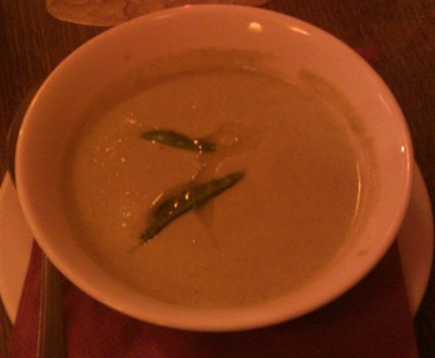 já - Vegetariánská restaurace je asi poslední podnik, kam by mne samo od sebe napadlo jít. Po první sérii testu restaurací se ale objevila mezi doporučenými restauracemi, tak jsem si řekl, že vyzkouším i pro mne něco takto netradičního. Byl jsem upozorněn, že je restaurace trochu alternativnější, tak jsem byl připraven být tolerantní. Restaurace se nachází ulici vedle Staroměstského náměstí, takže v samotném centru Prahy, což dělá opravdové problémy s parkováním, zachránily mne placené garáže pod Rudolfinem. Interiér restaurace je pěkný, čistý, převážně dřevěný. Restaurace se rozkládá v přízemí a suterénu, my jsme seděli v suterénu a tam se mi líbilo zákoutí s rostlinami a lustry z nějaké škrobené látky, které budily dojem něčeho mezi květy a mořskými plody. Světla bylo trochu méně, tak se fotky mobilem moc nepovedly.