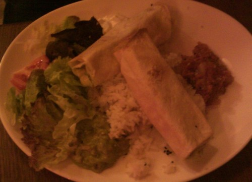 já - Do Jámy jsem se vydal, protože jsem na ni četl chválu v článku nějakého Američana v Praze. Říkal, že tam mají nejlepší hamburgery, co v Praze měl. Když jsme přišli na trochu pozdnější oběd kolem druhé hodiny, byla ale restaurace prakticky úplně prázdná. Čekal bych, že kdyby se jednalo o nějak vyhlášený podnik, byl by aspoň poloplný neustále. Restaurace na mne působila starším ale čistým českým dojmem. Vše bylo ve stylu na tmavo natřeného dřeva s množstvím plakátů.