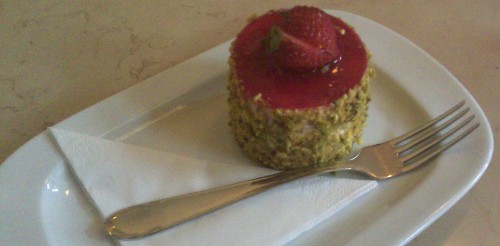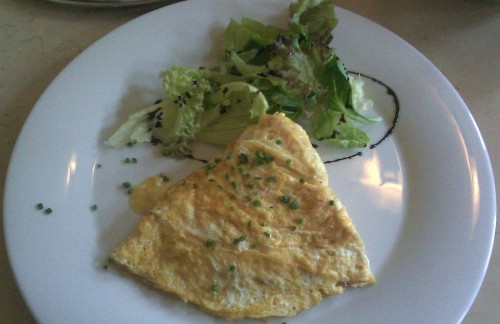 já - Vajíčka mám moc rád a nikdy jsem neměl pořádnou omeletu, jako předkrm jsem si tedy dal Omeletu Savoy, která obsahovala sýr Gruyere. velmi dobrá, omeleta byla velmi nadýchaná. U hlavních jídel jsem mohl vsadit na skoro jistotu v podobě kachny, ale říkal jsem si, že ochutnám nějakou zvláštní věc, co jinde nenabízí. Vybral jsem tedy Talíř Savoy, který obsahoval všechny zvláštnosti najednou - párky, šunku, merguezi (taková hovězí klobása), brambory, nekyselé zelí a kuličkovou hořčici. Jídlo bylo absolutně nudné, kuchař se pro něj nemusel vůbec snažit. Jedinou aspoň trochu zajímavou částí byla ta hovězí klobása. Nechápu, jak takové jídlo můžou pojmenovat po svém podniku. Jako pití jsem měl shake. Nejdřív jahodový se zmrzlinou, to byla umělá jahodová chuť v chladném mléku a navrchu našlehaná šlehačka, která nebyla po vypití shaku brčkem, jak sníst. Druhý shake jsem měl malinový, který byl z pravých malin a byl o tři třídy lepší. Mám pocit, že Savoy je vyhlášený svými dezerty, tak jsem samozřejmě jeden ochutnal. Vybrat si můžete z vitríny chladícího pultu, kde mají asi deset různých dezertů výsečí dortů po známé malé zákusky. Tento způsob výběru mne ohromě potěšil, protože u zákusků si hodně vybírám podle vzhledu. Vybral jsem si malý tvarohový dort s jahodovým želé na povrchu a jahodou, byl výborný.