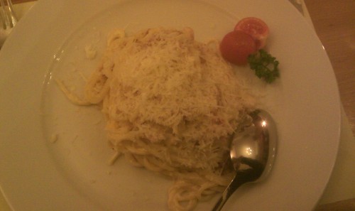 já - Pizzerii jsem měl doporučenou pro dobrou pizzu, ale v rámci srovnání jsme si dali carbonary a lasagne.