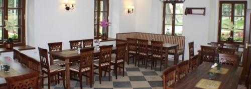 já - Jedna z nejzajímavěji umístěných restaurací, kam jsme se zatím v rámci testu restaurací podívali. Nachází se ve dvoře Břevnovského kláštera. Interiér restaurace je laděný do příjemného staročeska, interiér je dřevěný, zdi jsou opukové a v čele místnosti hoří oheň v krbu. Opět bych se zastavil u osvětlení, se kterým jsem osobně problém neměl, protože jsem seděl přímo proti světlu, ale dva stoly vedle už bych se tmou skoro bál. Však to taky vidíte na fotkách, jak už jsou do oranžova.
