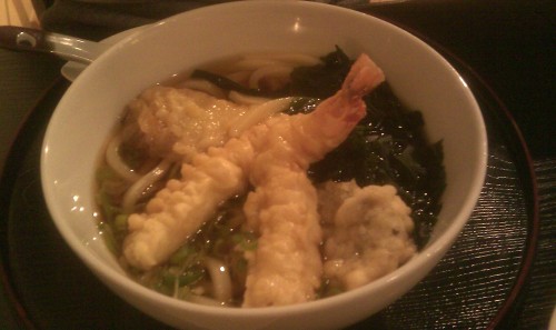 já - Dočetl jsem se na internetu, že obsluha je čistě japonská a mají problém se dorozumět i anglicky, toho jsem se hodně bál. Naštěstí byl v restauraci český číšník, který se o nás celou dobu staral. Vzhledem k tomu, že japonskou kuchyni vůbec neznám, řekl jsem si, že si nechám jídla doporučit. Číšník tím byl velmi překvapen, ale nakonec mi asi tři jídla doporučil. Zajímavé bylo, že poté, co nás obsloužil, se vždy od stolu vzdaloval otočený k nám a občas se ještě zastavil a pár sekund nás pozoroval. Předpokládám, že to je nějaký japonský zvyk, moc příjemné mi to nebylo. Obslouženi jsme byli hned po usazení a při objednávce jídel jsme byli informováni o odhadované době přípravy.
