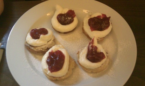 A nakonec přišel dezert, což byl lívanec s kysanou smetanou, čerstvými kanadskými borůvkami, kompotovanými lesními borůvkami, lístky meduňky a troškou javorového sirupu. Na lívanci mne překvapilo, že nebyl vůbec teplý. Nejdřív mi vadilo, že těsto nebylo moc sladké, ale postupně jsem k němu začal přidávat ovoce a smetanu a vše krásně hrálo dohromady. Jen meduňka na mne zase zaútočila, tu jsem vůbec neocenil. Celkově jsem při jídle měl pocit, že nejím zas tak velké porce a měl jsem dokonce trochu hlad, ale když jsme se dali z restaurace na cestu domů do kopce, pochopil jsem, že jsem se najedl dost.