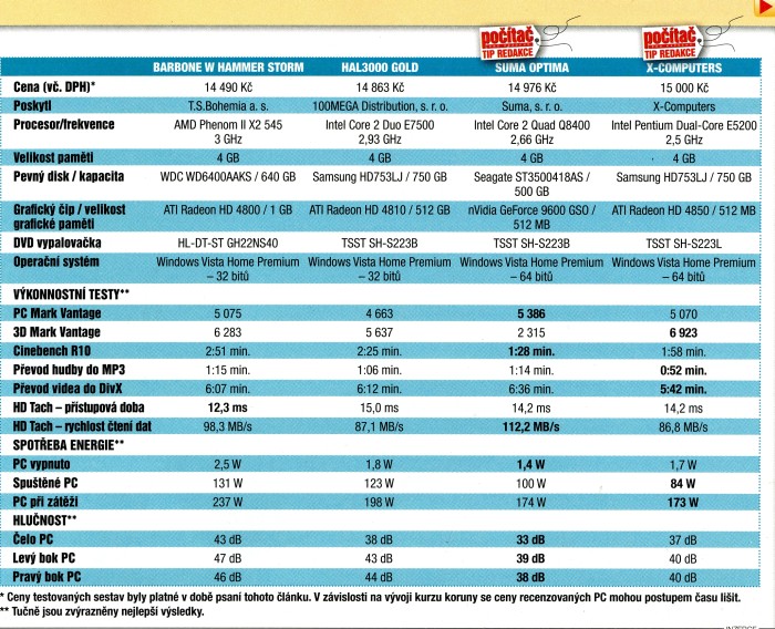 Srovnávací test v časopisu Počítač pro každého
