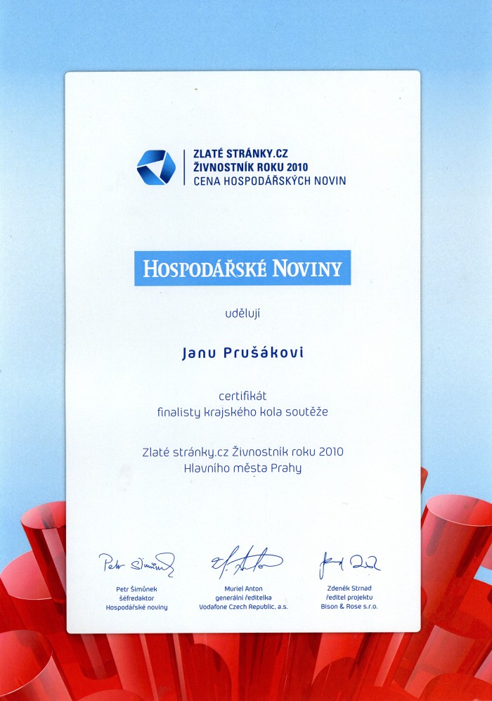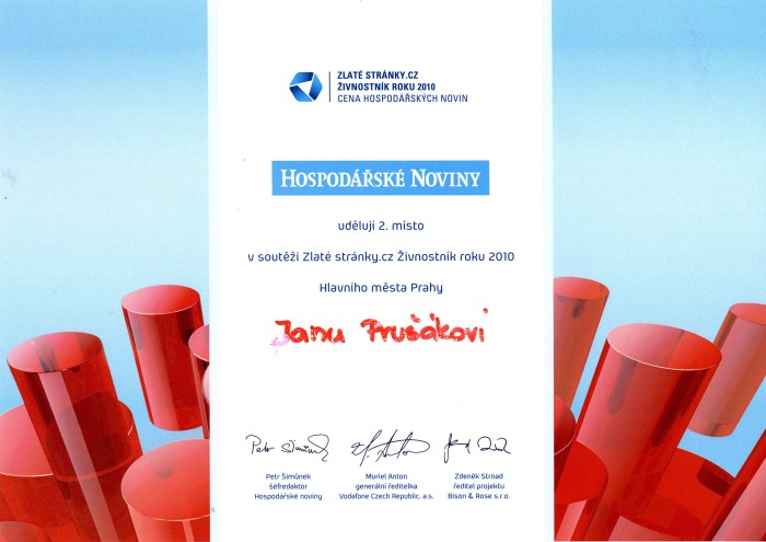 Druhé místo ve finále krajského kola soutěže Živnostník roku 2010