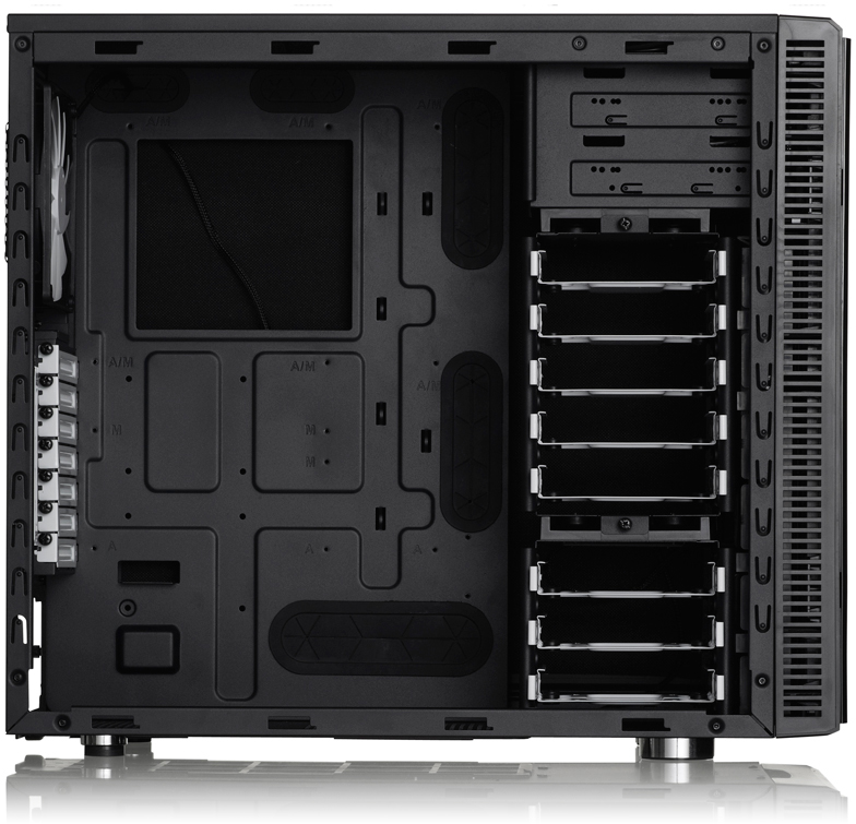 Má výborné možnosti chlazení. Dodává se dvěma 140mm ventilátory pro velký průtok vzduchu skříní. Na čelním panelu jsou vyvedeny 2 konektory USB 2.0, dva USB 3.0 a audio konektory (sluchátka a mikrofon). Skříň je speciálně vybavena pro snížení hluku. Průhledná levá bočnice.