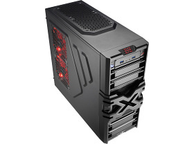 Skříň obsahuje 2x 120mm ventilátor. Na čelním panelu jsou vyvedeny dva konektory USB 3.0 a standardní audio konektory (sluchátka a mikrofon).