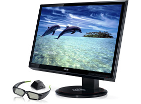 Velký širokoúhlý 23“ LCD monitor s DVI vstupem pro ostrý obraz. Tento monitor dokáže zobrazit FullHD rozlišení 1920x1080. Specialitou monitoru je vysoká obnovovací frekvence, díky které je možné použití pro 3D zobrazení podporovaných her a filmů. Dodávané speciální aktivní bezdrátové 3D brýle každému oku propouští vlastní obraz, čímž vytváří zážitek třetího rozměru. Pro 3D zobrazení vyžaduje grafické karty GeForce.