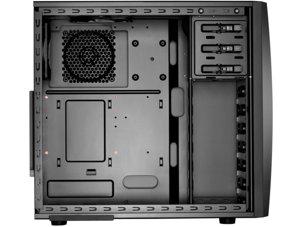 Má výborné možnosti chlazení. Dodává se s jedním 120mm a jedním 140mm ventilátory pro velký průtok vzduchu skříní. Na čelním panelu jsou vyvedeny 2 konektory USB 3.0 a standardní audio konektory (sluchátka a mikrofon).