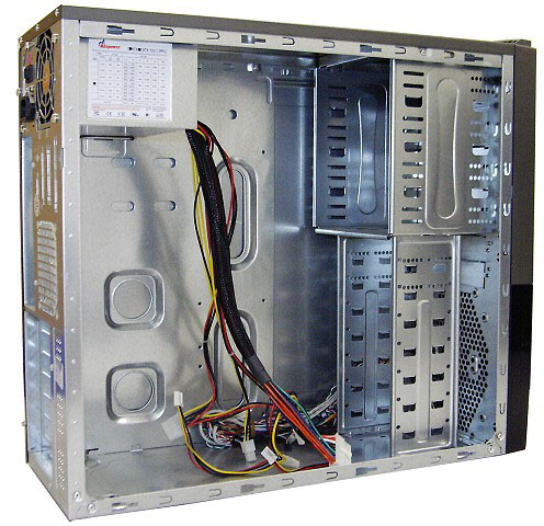 Základní skříň vhodná pro jednodušší počítačové sestavy. Umožňuje montáž komponent plné velikosti i přídavných ventilátorů. Skříň obsahuje 350W zdroj s 80mm ventilátorem. Na čelním panelu jsou vyvedeny 2 konektory USB a audio konektory (sluchátka a mikrofon).