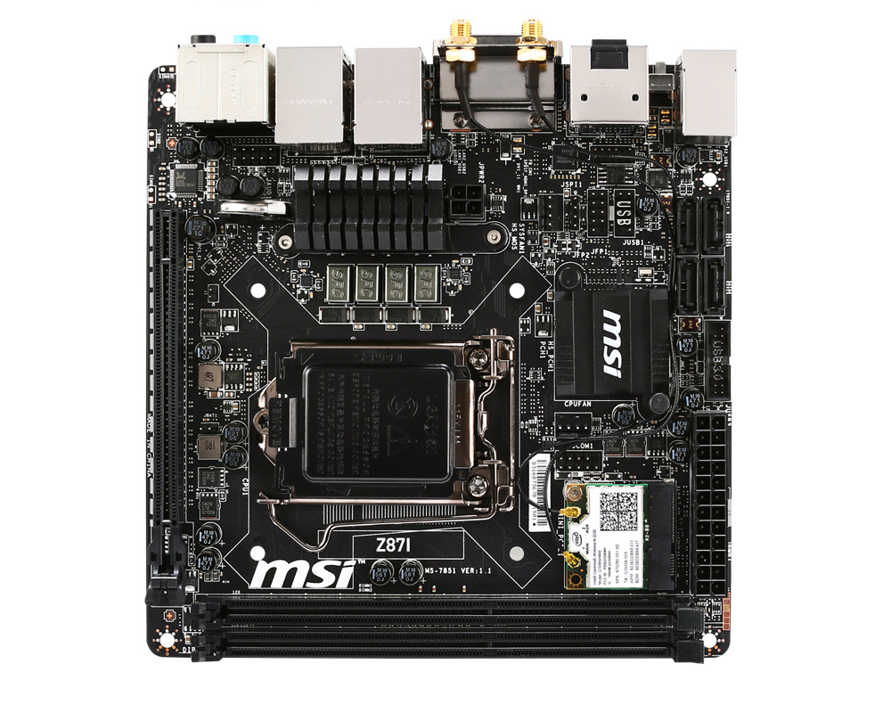 Základní deska formátu Mini-ITX podporující moderní technologie (USB 3.0, 7.1 zvuk, DVI, HDMI, DisplayPort, Wifi, až 16GB RAM…).
