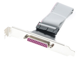 Záslepka dozadu skříně, která vyvádí jeden výstup paralelního LPT portu ze základní desky.