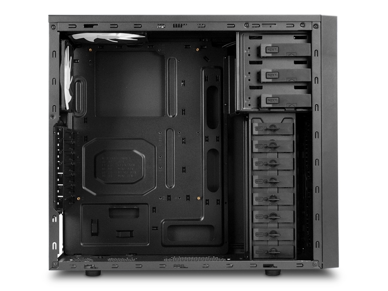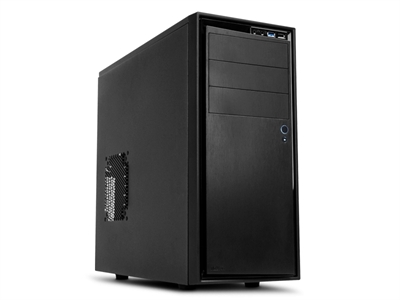 Kvalitní skříň speciálně vybavená pro odhlučnění provozu počítače. Dodává se s ventilátory, jedním 140mm a jedním 120mm, které se starají o průtok vzduchu skříní. Na horním panelu jsou vyvedeny 2 konektory USB (1x USB 2.0, 1X USB 3.0) a audio konektory (sluchátka a mikrofon).