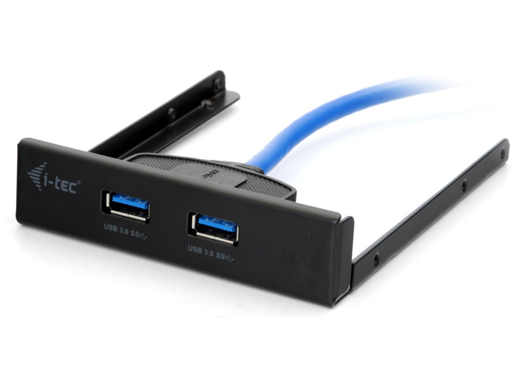 Rozšiřující 3,5" panel vyvádí z vlastní PCIe karty dva USB 3.0 konektory na čelo skříně a dva USB 3.0 konektory dozadu skříně.